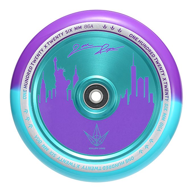 Jon Reyes Signature wheel with NEW Purple/Teal New York skyline. Featuring a unique black and white dual-tone 120mm x 26mm wide poly-urethane.
