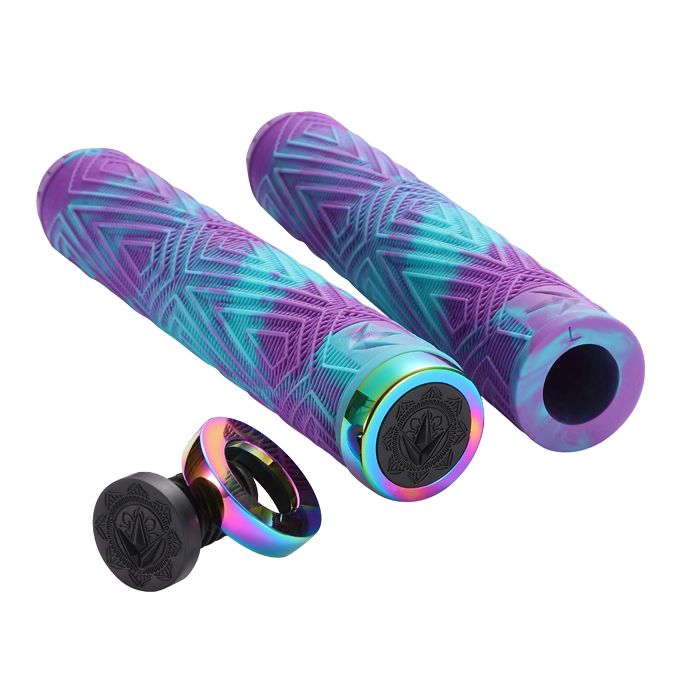 These handgrips are thicker and longer than we have ever produced, creating a durable longer wearing grip with a premium feel. We topped them off with our interchangeable Halo bar ends