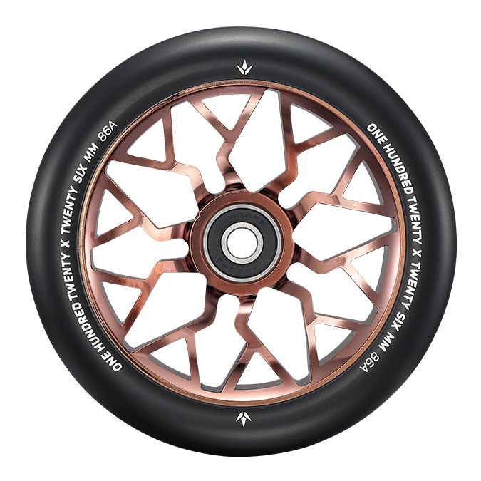 The Sector wheels come in at 120mm in diameter, which allows for higher distance off the ground, preventing deck scrapping. 24mm wide at the core, but 26mm wide at the urethane to protect the core.